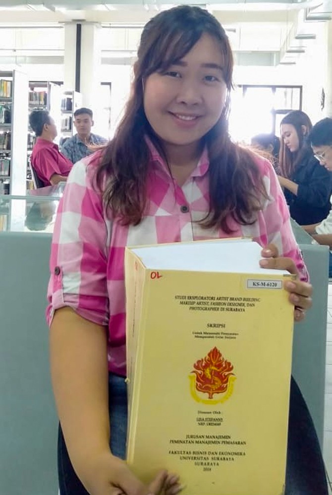 NAMA Lisa Stefany mendadak viral. Sebuah akun Instagram meng-upload skripsi lulusan Manajemen Pemasaran, Fakultas Bisnis dan Ekonomika, Ubaya. Sebab, skripsi yang berjudul Studi Eksploratori Artist Brand Building Make-up Artist, Fashion Designer, dan Photographer tersebut memiliki 1.150 halaman. Lisa mengerjakannya selama 45 hari atau satu setengah bulan saja. Padahal, biasanya mahasiswa lulus dengan skripsi tiga digit di belakang saja (150 halaman) dalam waktu lebih dari setahun.