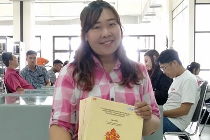 Saking tebalnya, Lisa harus mengerahkan tenaga ekstra ketika memindahkan skripsi ke ruang perpustakaan Ubaya pada Senin (29/4). ''Ya memang tebal. Sebab, saya memikirkannya sejak semester V,'' katanya.