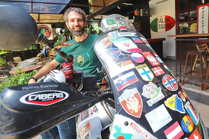 Matteo Nanni merupakan rider yang menempuh perjalanan dari Italia ke Indonesia. (Hanung Hambara/Jawa Pos)