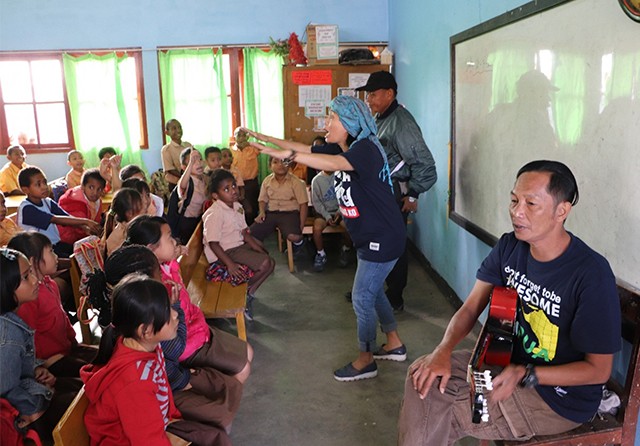 Asap di gelas yang berisi kopi tiom masih mengepul. Cerita dari keduanya tak berhenti. Perjalanan dongeng di Papua tersebut dimulai 15 Juli tahun lalu. Komunitas Dongeng Dakocan yang bermarkas di Lampung berangkat ke Papua. Tawaran dari Polri itu mereka terima karena memang misi mereka adalah membagi sukacita kepada seluruh anak di penjuru negeri.