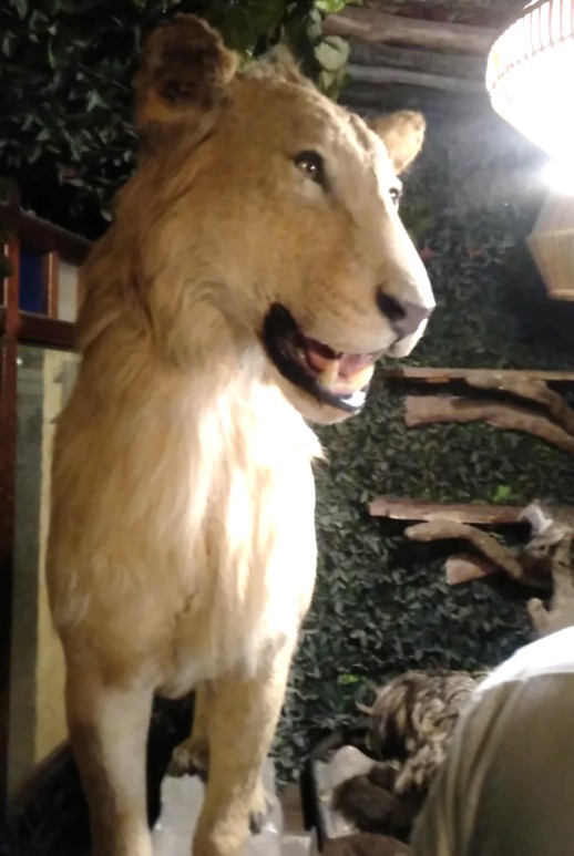 Singa yang diawetkan dipajang di salah satu stan. (FIRMA ZUHDI ALFAUZI/Jawa Pos)