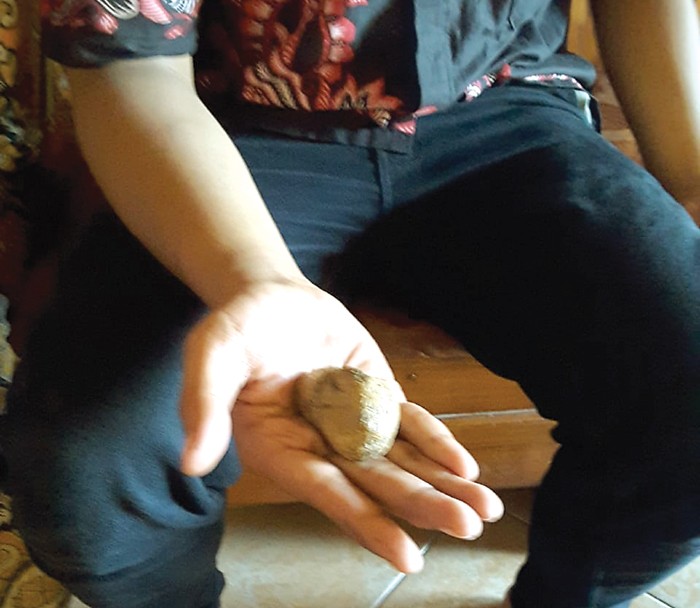 Ponari menunjukkan batu yang kini disimpan neneknya. (I’IED RAHMAT RIFADIN/JAWA POS)
