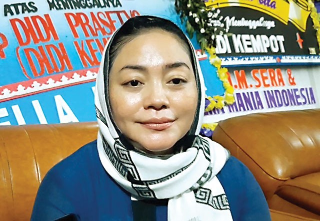 TERUS DIKENANG: Yan Vellia di sela peringatan 7 hari wafatnya penyanyi legendaris itu di Solo (10/5). (ANTONIUS CHRISTIAN/JAWA POS RADAR SOLO)