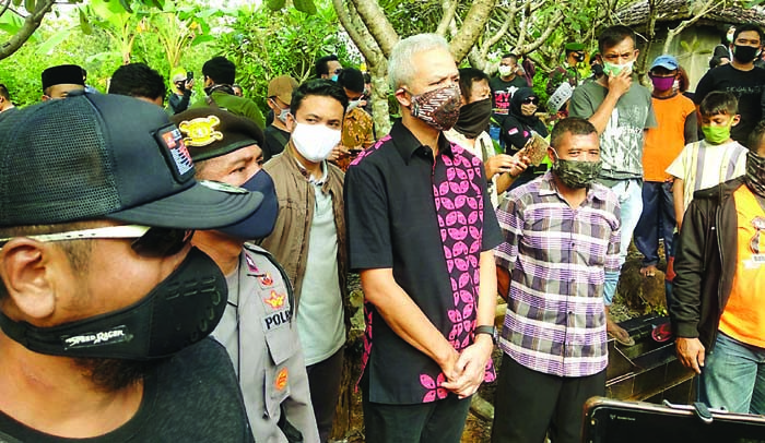 SAHABAT BANYAK ORANG: Ganjar Pranowo saat menghadiri pemakaman Didi Kempot di Ngawi (5/5). (LATIFUL HABIBI/JAWA POS RADAR NGAWI)