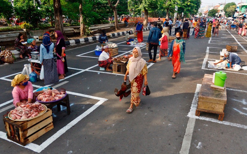 Zaini menjelaskan bahwa program physical distancing sulit diterapkan di area pasar. Sebab, jarak stan antar pedagang terlalu mepet. Situasinya lebih parah saat menjelang Lebaran lalu. Pengunjung berjubel.