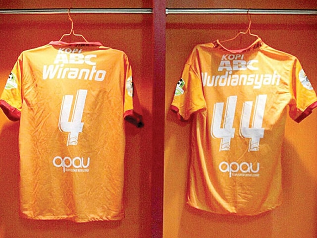 CERITA DI BALIK NAMA: Kiri, Dave Mustaine yang akrab dengan Megadeth, band yang dikomandoi Dave Mustaine. NAMA: Wiranto dan jersey yang dikenakannya di Borneo FC. (ANGGER BONDAN/JAWA POS-WIRANTO FOR JAWA POS)