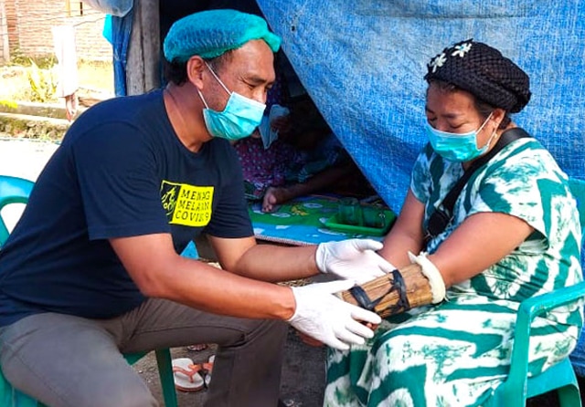 PENGABDIAN TULUS: Dokter Agus Harianto SpB sedang memberikan layanan kesehatan di Sulawesi Barat. (SEPTINDA AYU PRAMITASARI/ JAWA POS)