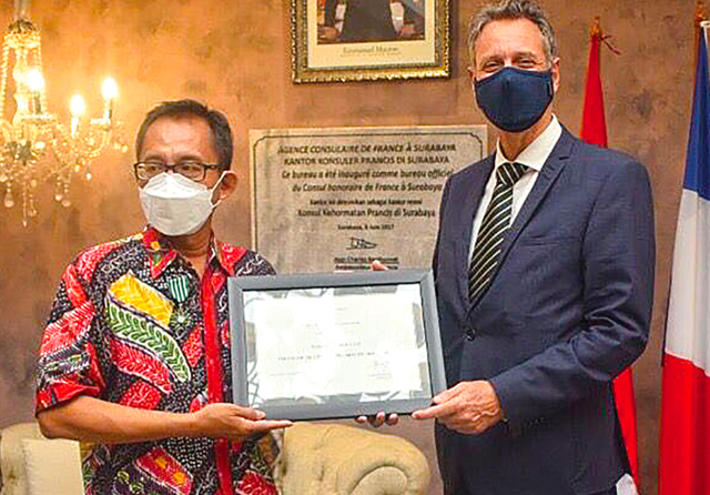 Tidak lama dari pemberitahuan itu, dia lantas mendapatkan e-mail resmi dari pemerintah Prancis. Sampai pada 3 Desember lalu, medali kehormatan tersebut resmi disematkan di bajunya langsung di kantor Konsulat Kehormatan Prancis Surabaya oleh Stéphane Dovert, perwakilan Kedutaan Besar Prancis untuk Indonesia yang juga merupakan konselor kerja sama kebudayaan sekaligus menjabat direktur Institut Français di Indonesia.