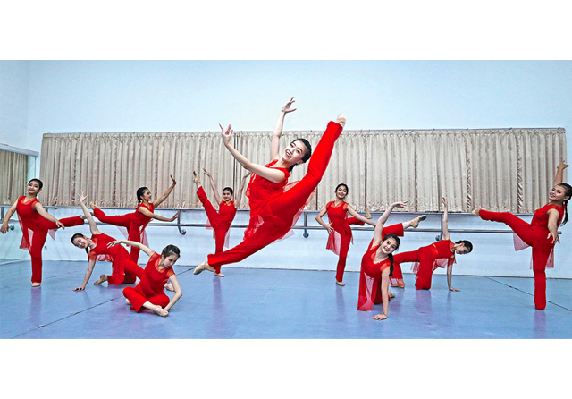 SERBAMERAH: Penampilan kelompok balet Marlupi Dance Academy. Kelompok itu memperoleh medali emas saat mengikuti ajang internasional di Singapura. (Puguh Sujiatmiko/Jawa Pos)