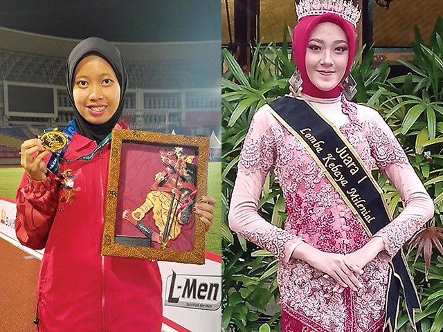 KAYA PRESTASI: Karisma Evi Tiarani (kiri) dan medali emas lari 100 meter dalam ASEAN Para Games di Solo Agustus lalu. Desy Ramadhani Maghfiro Ayu Putri saat menjuarai Lomba Kebaya Milenial di Festival Kebaya 2021 di Banyuwangi. (ISTIMEWA)