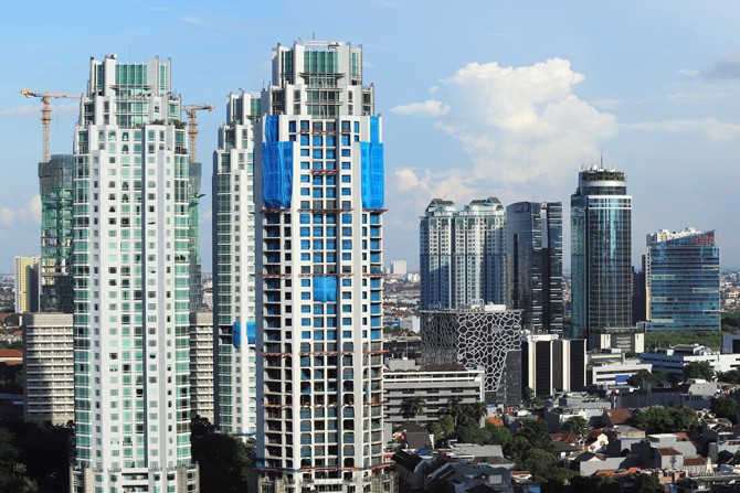 Gedung-gedung bertingkat di kawasan Jalan Jendral Sudirman, Jakarta, Senin (27/1/2020). Bank Indonesia (BI) memprediksi pertumbuhan ekonomi Indonesia sepanjang 2019 berkisar di bawah 5,1 persen. Foto: Dery Ridwansah/ JawaPos.com