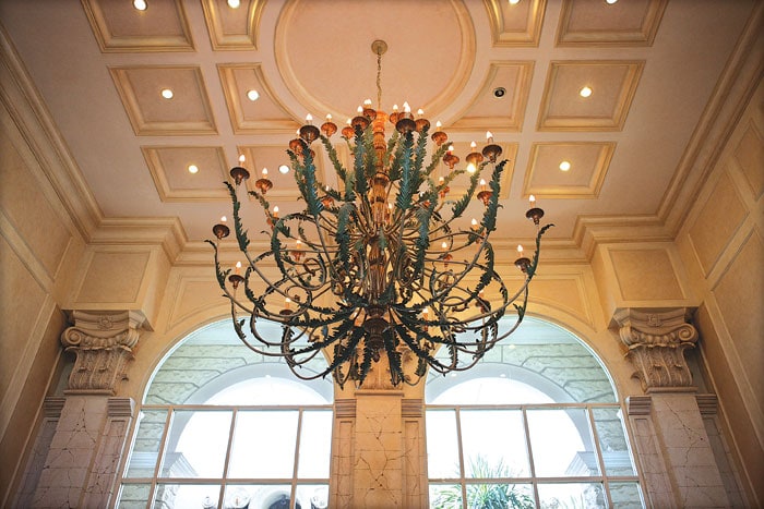 MEGAH DAN MEWAH: Dinding lengkung dengan aksesn retakan ditambah pencahayaan keemasan memperkuat ambience klasik. (SUGENG DEAS/JAWA POS)