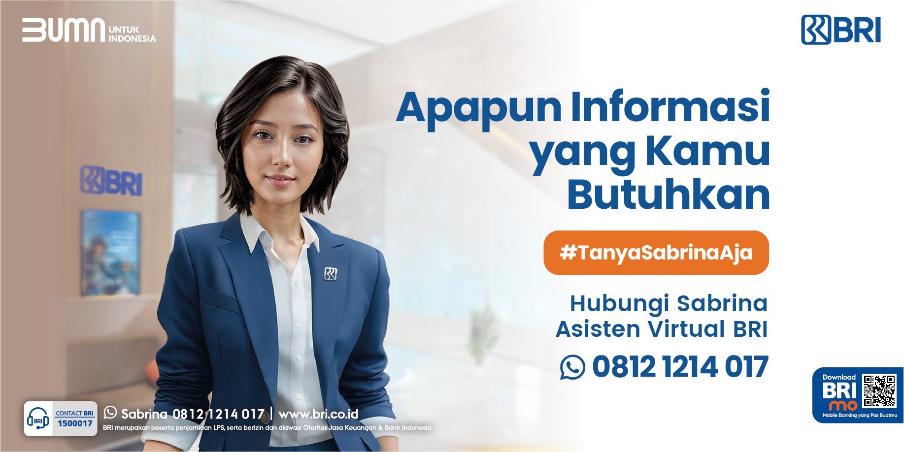 Kemudian, untuk kemudahan informasi, nasabah dapat menghubungi Sabrina melalui WhatsApp di nomor 0812 1214 017 dan untuk kemudahan transaksi kamu download BRImo secara resmi di Google Play Store , App Store, dan Huawei App Gallery.