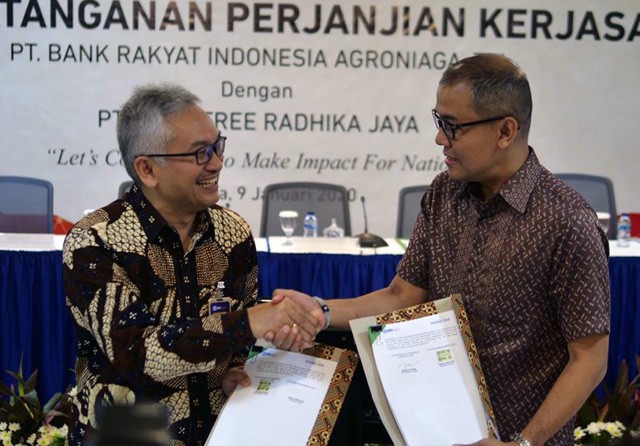 Perjanjian Kerjasama penyaluran pendanaan untuk pinjaman melalui platform Investree ini ditandatangani oleh Plt Direktur Utama BRI Agro Ebeneser Girsang dan Direktur Sales dan Bisnis Salman Baharudin di Gedung BRI Agro, Jakarta, Kamis (9/1).
