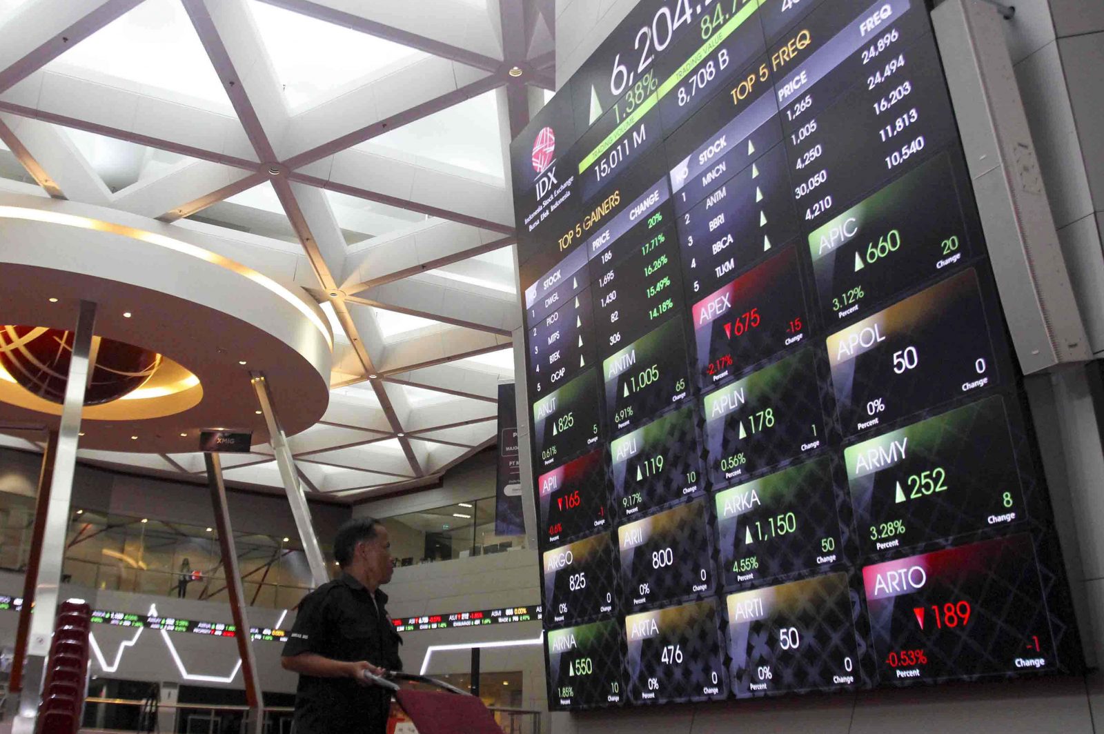 Pergerakan indeks harga saham gabungan (IHSG) di Bursa Efek Indonesia, Jakarta, Rabu (7/8/2019). Perdagangan IHSG ditutup menguat 84,72 poin atau 1,38 persen ke posisi 6.204,2. Foto: Dery Ridwansah/ JawaPos.com