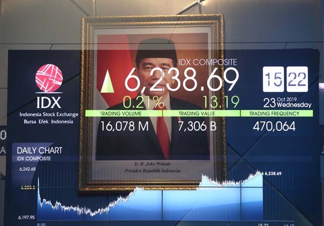 Indeks Harga Saham Gabungan (IHSG) ditutup menguat pada. Rabu (23/10). IHSG menguat 32,31 poin ke level 6.257,81. (Fedrik Tarigan/Jawa Pos)
