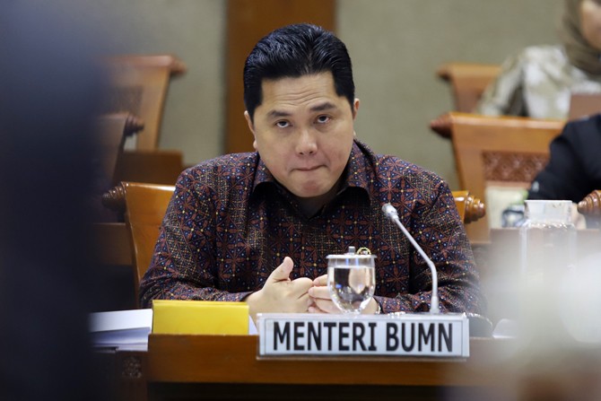 Menteri BUMN Erick Tohir saat Rapat Kerja (Raker) Panitia Kerja (Panja) Jiwasraya di Kompleks Parlemen, Senayan, Jakarta, Rabu (29/1/2020). Raker Panja Jiwasraya membahas penyelesaian sengkarut PT Asuransi Jiwasraya (Persero). Foto: Dery Ridwansah/ JawaP