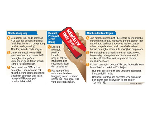 Sebelumnya, pemerintah memberikan tenggat kepada konsumen maupun produsen perangkat HKT untuk memastikan validitas IMEI di perangkat masing-masing hingga 18 April 2020. Sesuai dengan Peraturan Menteri Komunikasi dan Informatika Nomor 1 Tahun 2020 tentang Pengendalian Alat dan/atau Perangkat Telekomunikasi yang Tersambung ke Jaringan Bergerak Seluler Melalui IMEI.