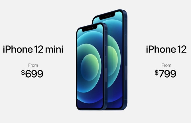 IPhone 12 dan iPhone 12 mini akan tersedia dalam model 64 GB, 128 GB, dan 256 GB. Masing-masing harga dari perangkat iPhone 12 dan iPhone 12 Mini akan ditawarkan mulai dari USD 799 atau berkisar Rp 11,8 jutaan dan USD 699 atau setara dengan Rp 10,3 jutaan.
