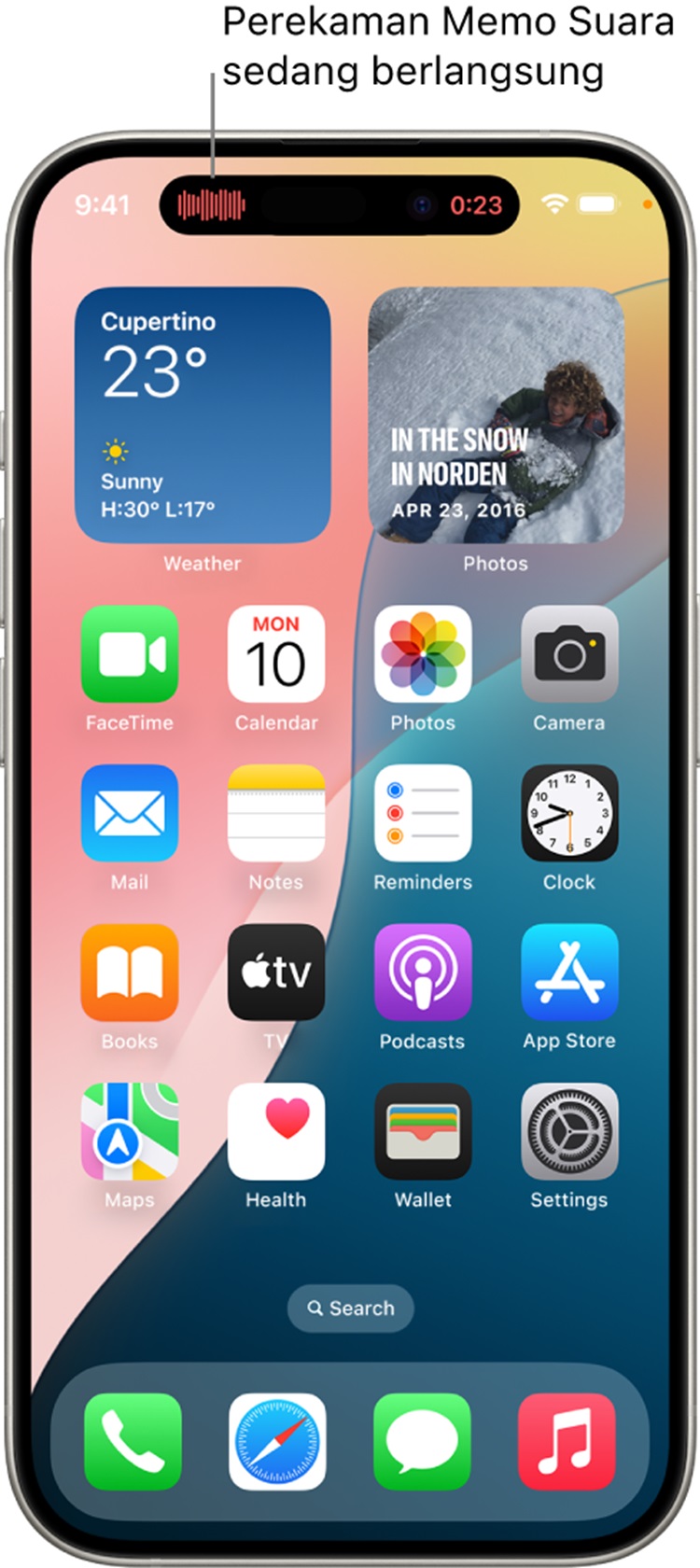 Dynamic Island hadir di bagian atas layar iPhone dan berfungsi sebagai area interaktif untuk menampilkan notifikasi, peringatan, dan aktivitas yang sedang berlangsung secara real-time, seperti panggilan masuk, rekaman audio, koneksi AirDrop, dan petunjuk arah dari Peta.