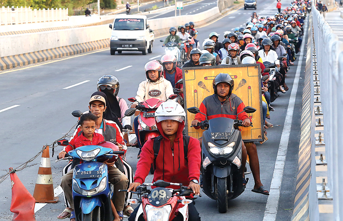 PULANG KAMPUNG: Pemudik asal Madura memadati Jembatan Suramadu, Surabaya, Rabu (28/6).