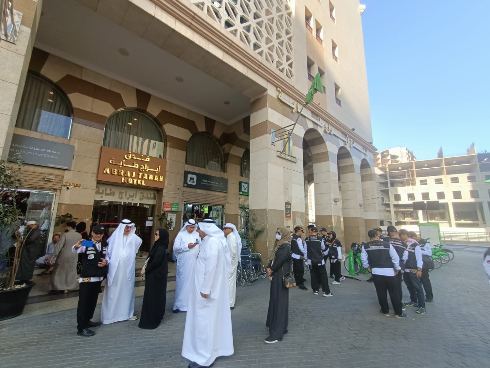 MENUNGGU: Petugas PPIH daker Madinah tengah bersiap menyambut kedatangan jamaah haji yang akan menginap di Hotel Abraj Tabah di Al Ansari Street, Madinah.