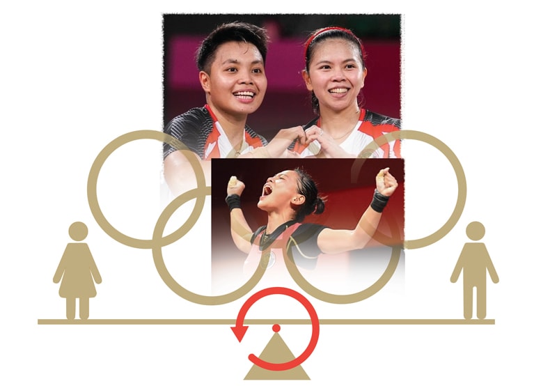 MASYARAKAT Indonesia merasakan haru melihat perempuan-perempuan hebat memenangkan medali di pertandingan akbar, Olimpiade di Tokyo. Prestasi yang mereka raih tidak lepas dari kerja keras dan tekad yang kuat. Dalam kondisi pandemi yang sarat dengan ujian dan hambatan, mereka tetap memberikan yang terbaik, mendorong tubuh mereka ke titik batas. Kemenangan tim bulu tangkis ganda putri Indonesia, Greysia Polii dan Apriyani Rahayu, menjadi momen penting dalam sejarah bulu tangkis Indonesia. Tim ini tercatat dalam sejarah sebagai tim ganda putri pertama Indonesia yang berhasil memenangkan medali emas di ajang Olimpiade. Derai air mata tidak terbendung ketika melihat mereka berdiri di podium berkalung medali emas, dengan mata yang berkaca-kaca memberikan hormat ke bendera Merah Putih.