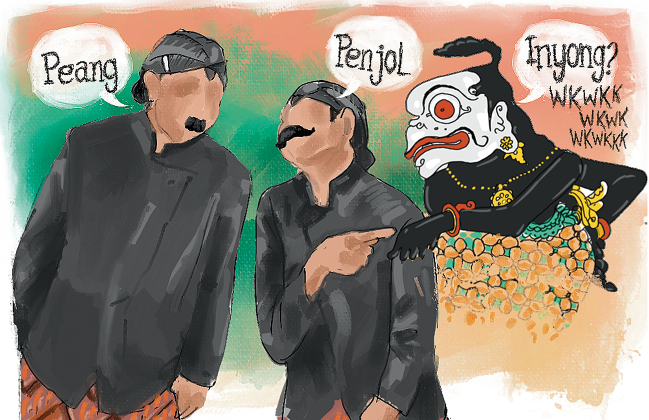 Arthur Asa Berger, ahli humor dari San Francisco State University, menyatakan bahwa paling tidak ada sebelas teknik atau strategi penciptaan humor melalui bahasa. Dari sebelas tersebut, paling tidak terdapat tiga teknik yang sering dimainkan Peang-Penjol, yaitu misunderstanding (salah penafsiran), pun (permainan kata), dan ridicule (membuat orang bodoh).