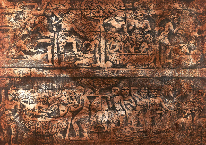 Inferno of Karmawibhangga Borobudur Relief #1. (drawing pen, acrylic on canvas, 2022, 190 x 265 cm). (DOKUMENTASI EDDY SUSANTO)