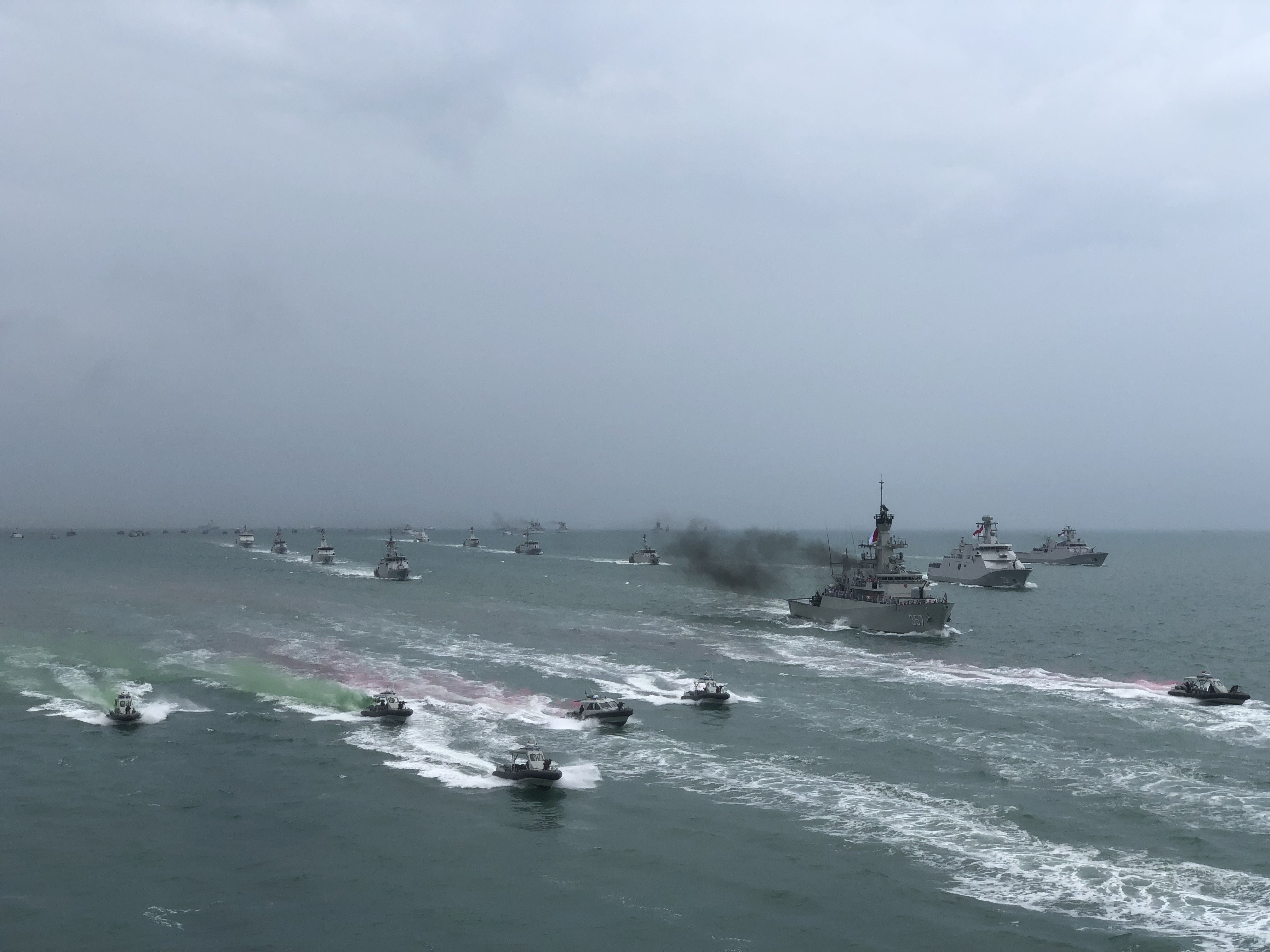 TNI AL menunjukkan armada kapal tempur mereka di Perairan Teluk Jakarta pada Selasa (10/9). (Syahrul Yunizar/JawaPos.com)