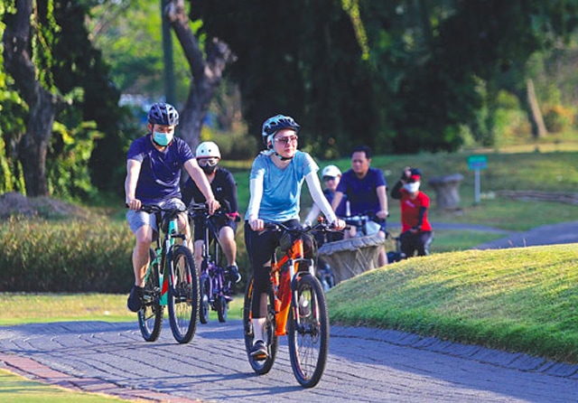 FUN RIDE: Peserta Gowes on Course menyusuri trek yang membelah lapangan golf di Ciputra Golf, Club & Resto pada Senin (14/9). Kebanyakan peserta menaiki sepeda lipat. Sepeda dengan roda lebih kecil yang pas dengan lebar jalan golf. (Riana Setiawan/Jawa Po