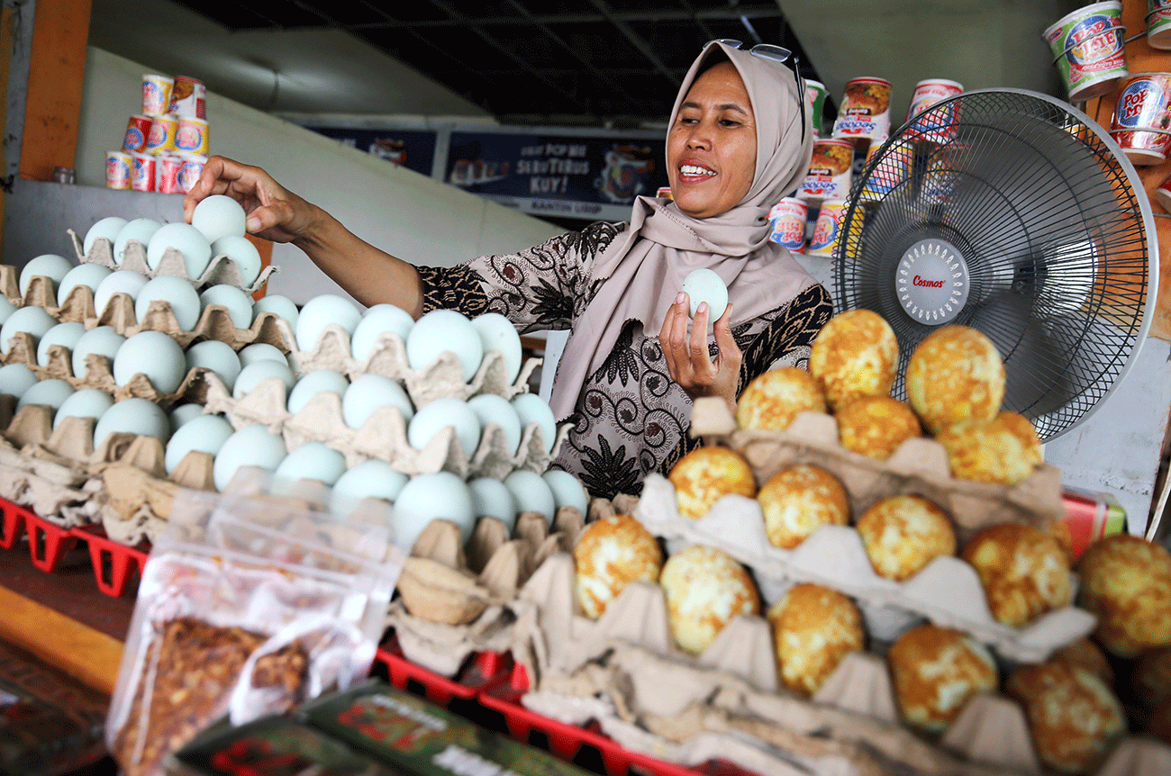 BERDAYAKAN UMKM: Ibu Urip, penjual telur asin di Rest Area Km 252 Pejagan-Pemalang, Kamis (7/3).
