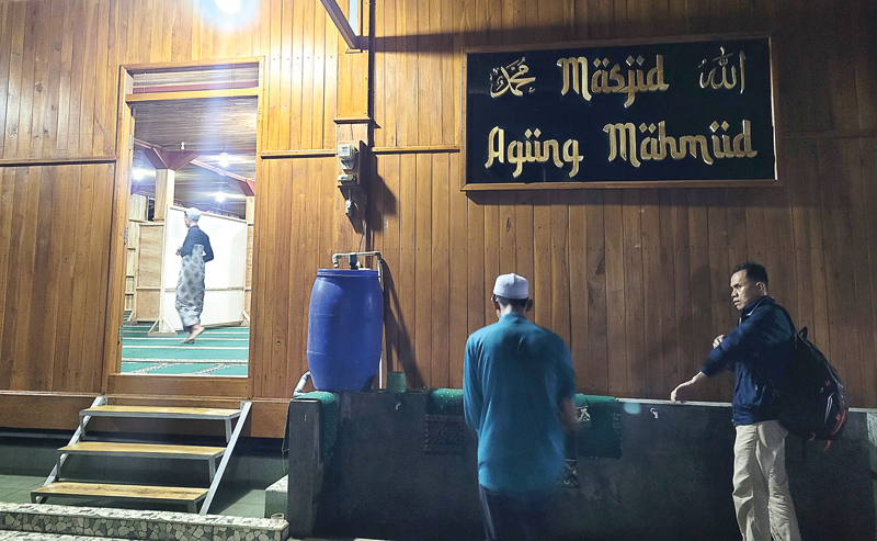 TERBUAT DARI KAYU: Suasana Masjid Agung Mahmud di Kampung Mahmuf, Kabupaten Bandung (26/3).