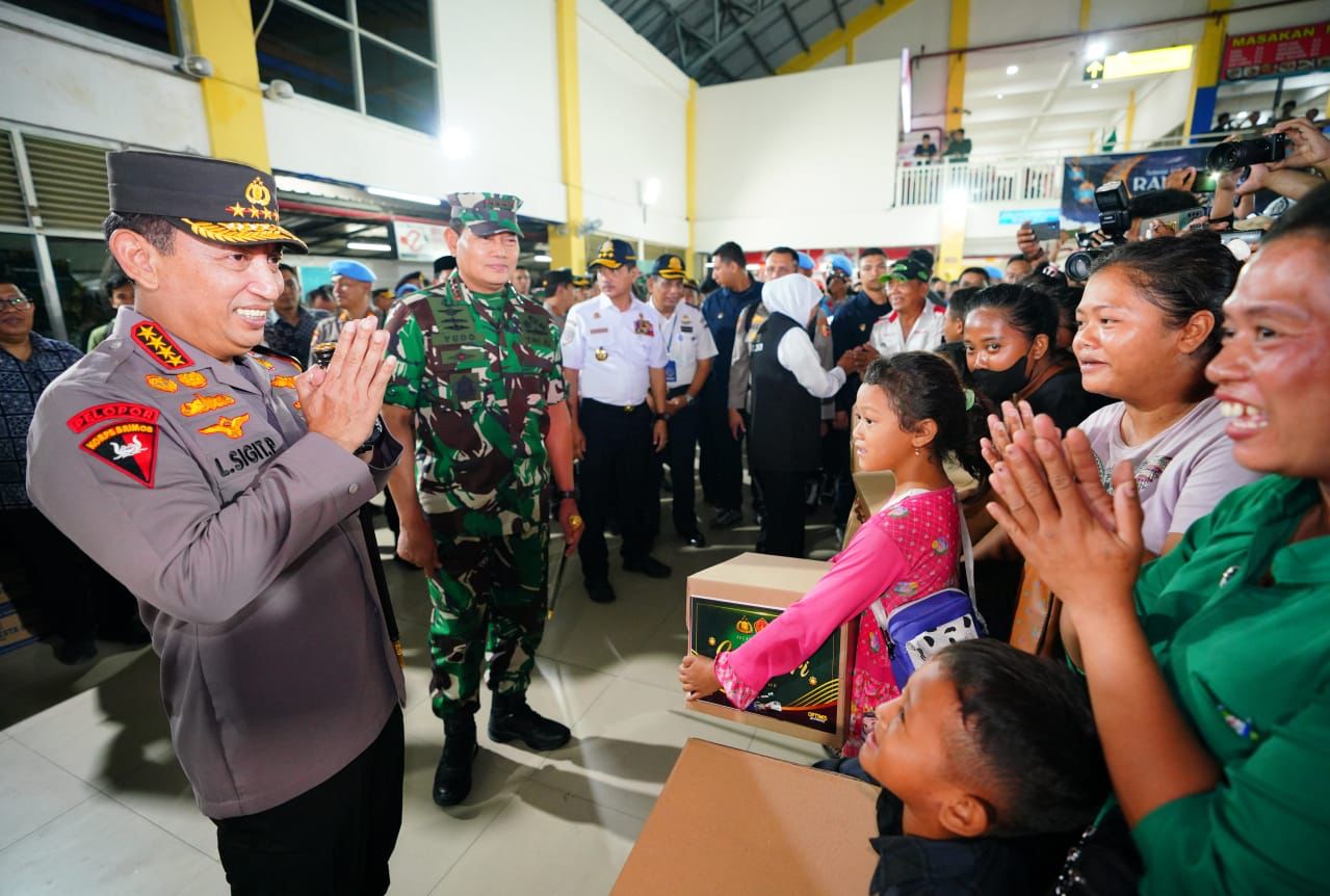 Kapolri Jenderal Listyo Sigit Prabowo bertemu pemudik di terminal Purabaya, Surabaya.