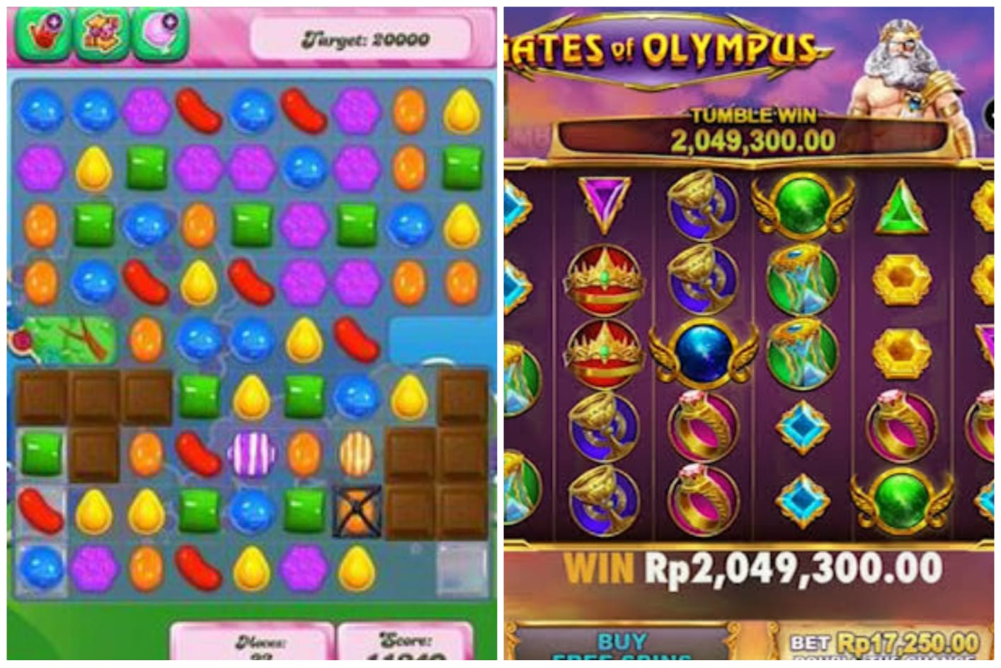 Game Slot (kanan) dan Candy Crush (kiri). (Istimewa)