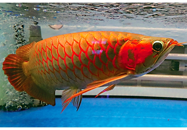 Arwana super red yang dioperasi Jeffri karena mata turun atau drop eye. (Jeffri Utomo for Jawa Pos)