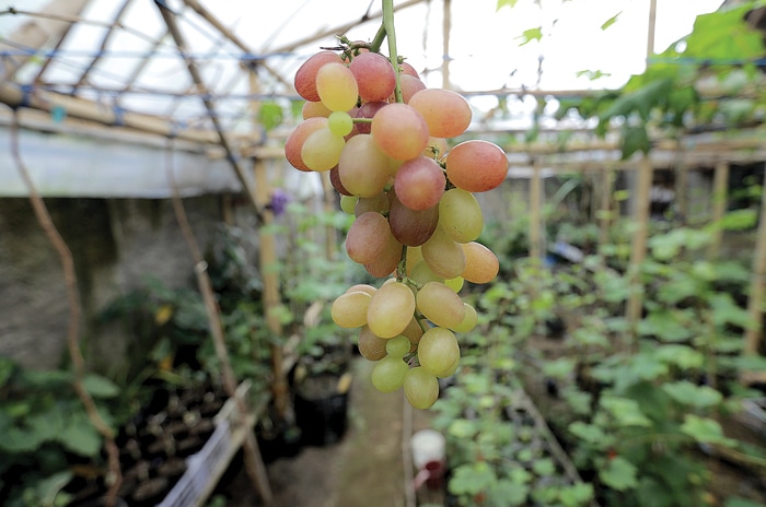 ASAL UKRAINA: Anggur Dixon yang berhasil ditanam di daerah Cikahuripan, Lembang, Kabupaten Bandung Barat. Anggur ini terkenal manis dan paling cepat berbuah di antara varietas lainnya. (IMAM HUSEIN/JAWA POS)