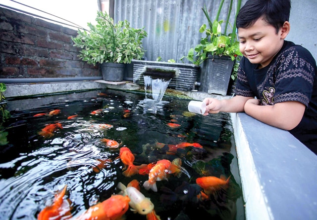 Pratama menuturkan, aktivitas Vio dalam mengurus ikan mas koki semakin intensif saat pandemi Covid-19. Hampir setiap hari dia membantu membersihkan filter dan memberi pakan di tiga kolam ikan.