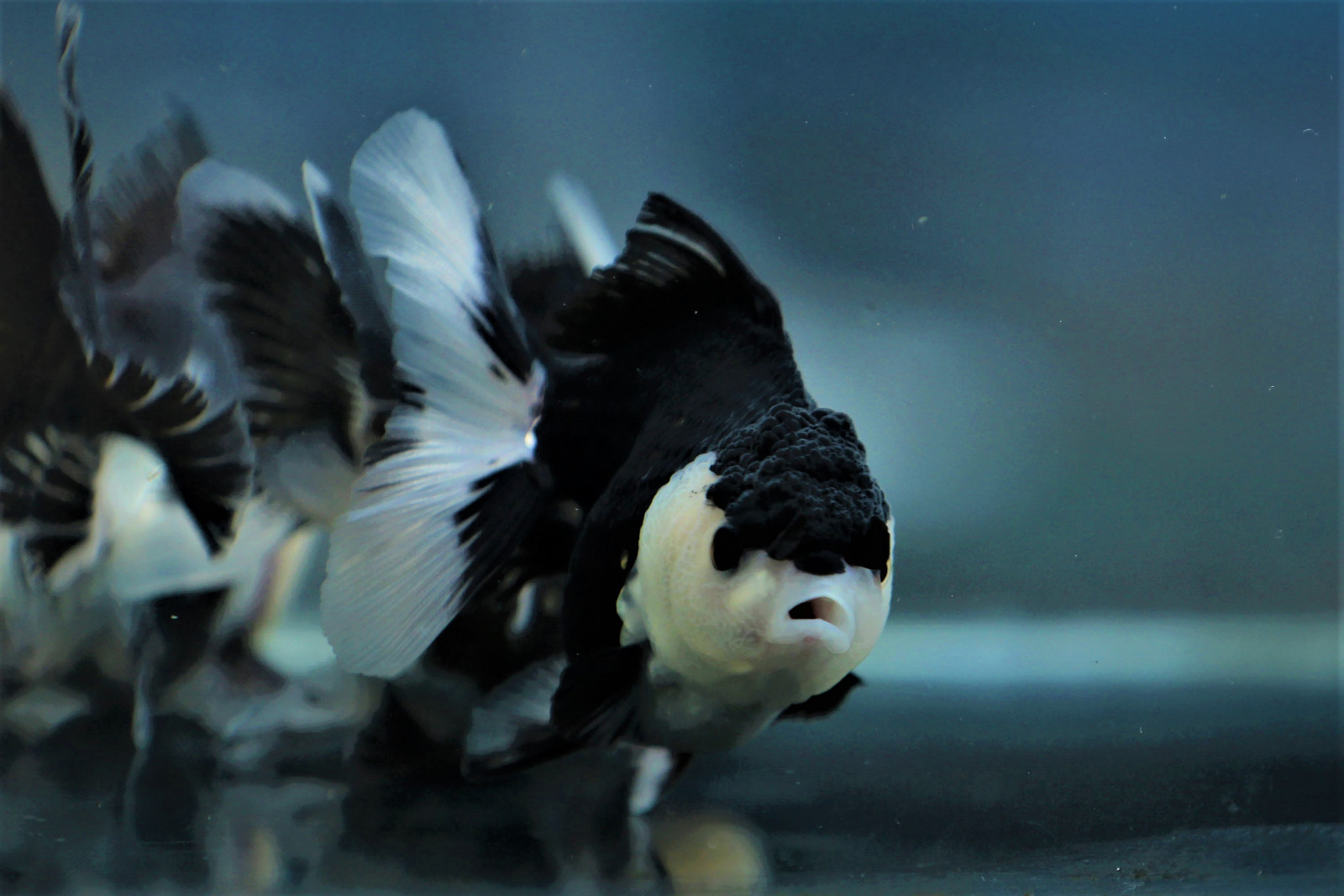 SEPERTI namanya, ikan tersebut memiliki wajah mirip panda. Kombinasi putih dan hitam sangat dominan pada wajahnya yang bulat. Karena masuk varian oranda, ia juga memiliki gumpalan menyerupai brokoli di kepalanya.