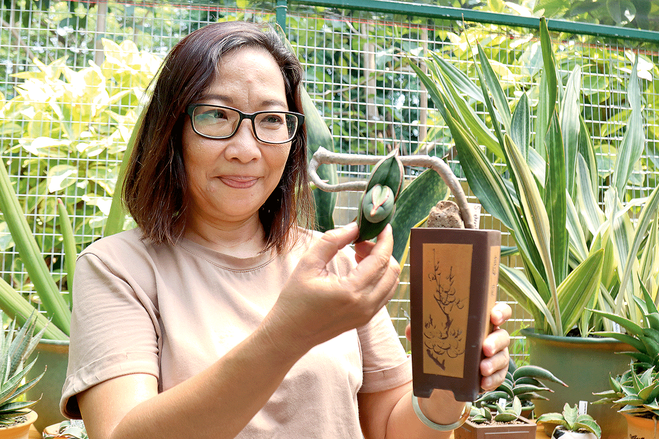 JERNIHKAN KUALITAS UDARA: Fifi dengan koleksi sansevieria miliknya. Khusus Sansevieria Mozambik berciri khas lurik seperti sisik ikan. Warnanya pun khas.