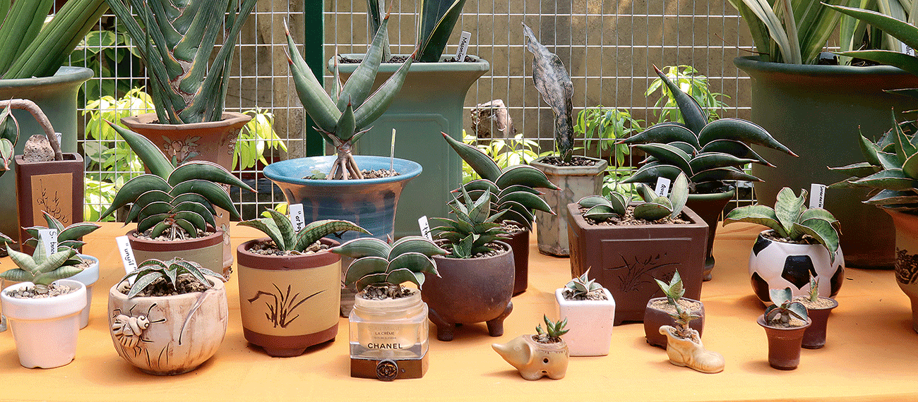 JERNIHKAN KUALITAS UDARA: Koleksi sansevieria milik Fifi. Khusus Sansevieria Mozambik berciri khas lurik seperti sisik ikan. Warnanya pun khas.