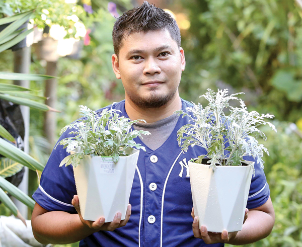 PERAWATAN MUDAH: Alfan Alif menunjukkan silver dust, koleksinya. Tanaman ini menggambarkan suasana musim salju karena daunnya berwarna silver. (ALFIAN RIZAL/JAWA POS)