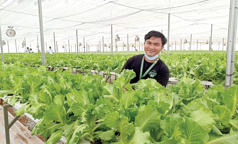 Muhammad Bhakti Triyoga, supervisor Nutrient Film Technique (NFT) yang bertugas di greenhouse (HILMI SETIAWAN/JAWA POS)