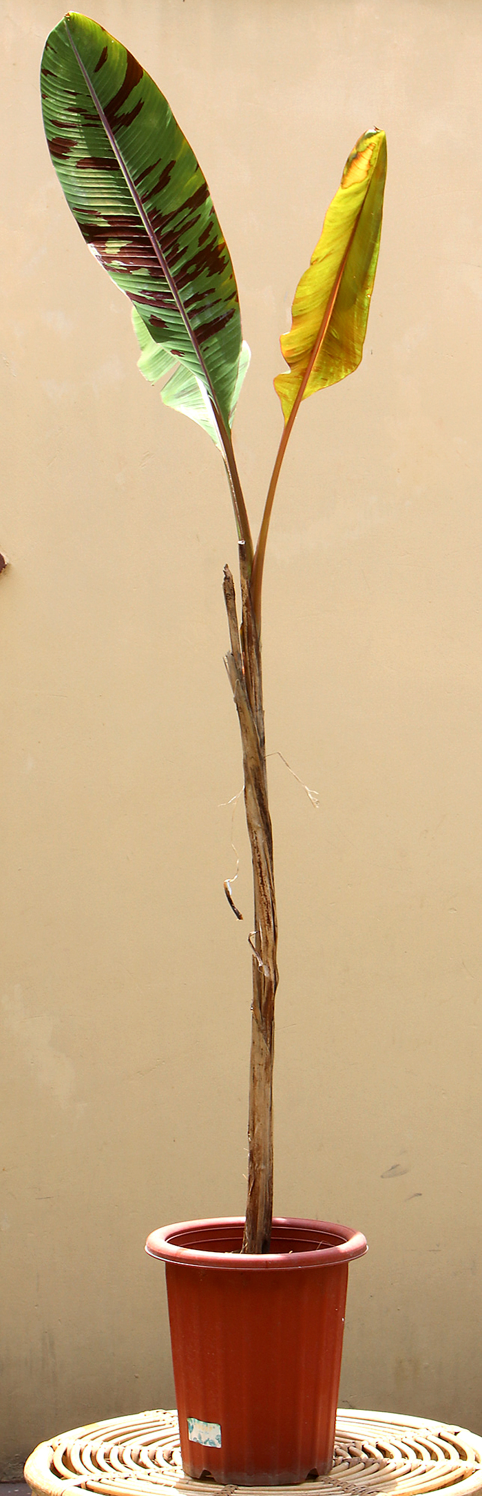 Menanam pisang tak harus membutuhkan lahan yang luas. Ada sejumlah varietas yang dapat ditanam di dalam pot dan dapat mempercantik pekarangan rumah. Di antaranya, Musa x paradisiaca ”ae ae” dan blood banana.