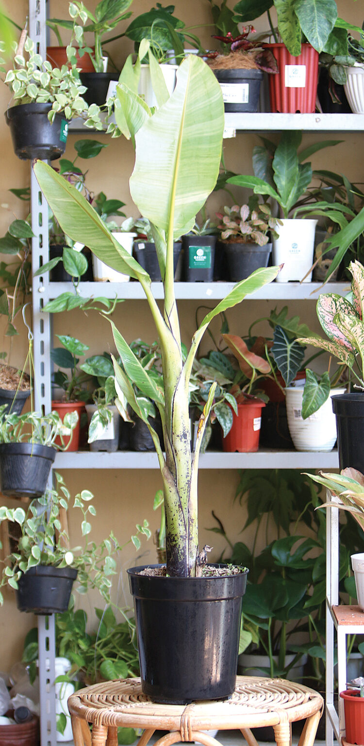 Beragam tanaman terlihat saat Jawa Pos berkunjung ke rumah penghobi tanaman asal Surabaya David Bernando. Musa x paradisiaca ”ae ae” dan Musa zebrina (blood banana) langsung menarik perhatian karena tingginya yang berbeda dengan tanaman hias yang lain. Sekitar 1,5 meter. ’’Alternatif bercocok tanam meskipun lahan tidak terlalu luas. Bisa tumbuh di pot,’’ ucap dia.
