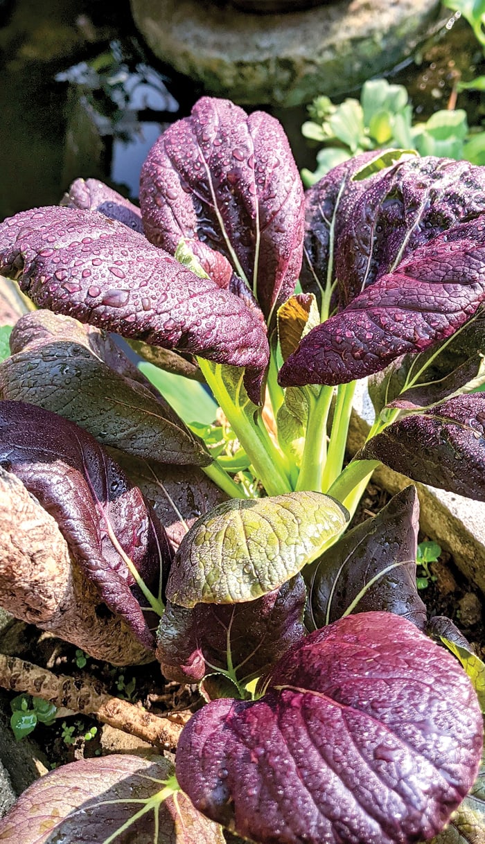 Dia aktif bertanam sayur sejak awal pandemi. Di antara sayuran di rumahnya, ada beberapa yang berwarna ungu. Misalnya, pakcoy, seledri batang ungu, dan kacang koro. ”Beda warnanya karena ada kandungan antosianin. Warnanya tidak selalu ungu. Ada yang justru jadi merah atau pink,” lanjutnya. Shinta merawat tanaman tersebut dari biji. ”Di sini, masih jarang yang jual bibit sayur. Kalaupun ada, sebatas tomat atau terong,” paparnya. Menanam dari biji pun membuat tanaman lebih mudah beradaptasi dengan lingkungan tempat tumbuh.