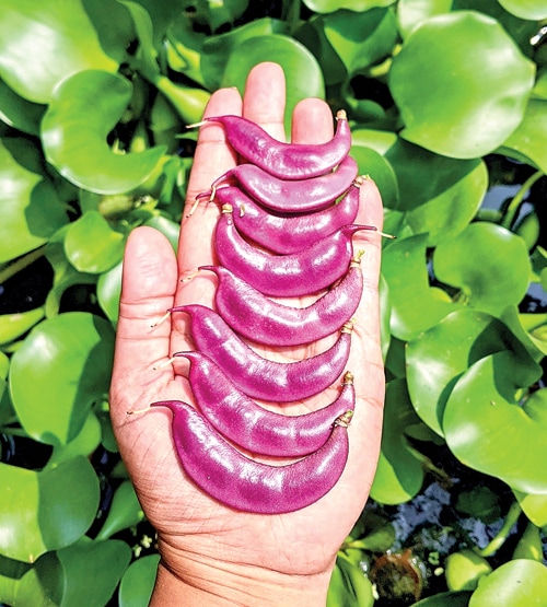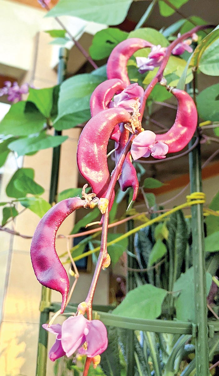 Kacang koro menjadi ”pendatang” baru di kebun Shinta. Sayur yang terbilang langka di pasaran itu tumbuh subur sejak ditanam pada pertengahan Mei. Biji kacang koro pink tersebut dia dapat dari barter dengan pekebun di Batam. ”Karena memang asli tropis, perawatannya lebih mudah. Ibaratnya, asal taruh saja, tumbuh. Tinggal ditambahkan trellis untuk rambatannya,” lanjutnya. Di usia tiga bulan, kacang tersebut sudah bisa dipanen.