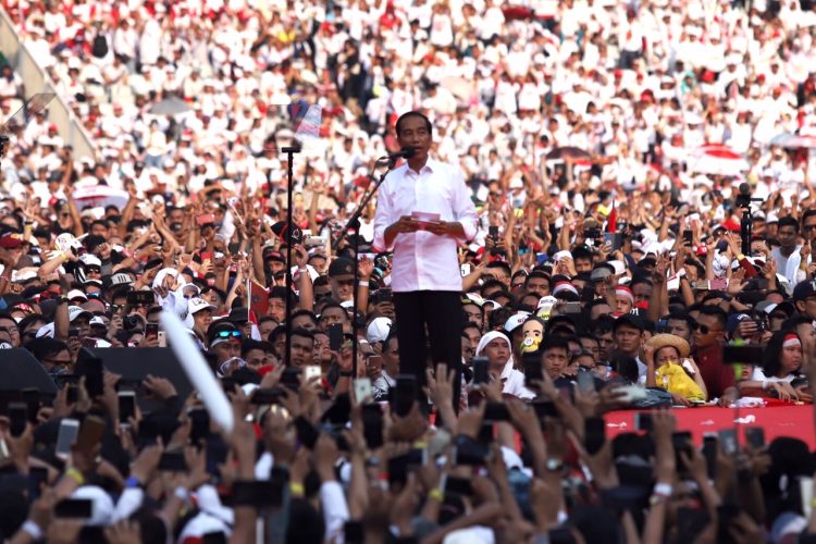 Presiden Jokowi saat berorasi di kampanye pada Pilpres 2019 lalu. (Dery Ridwansah/Jawa Pos)