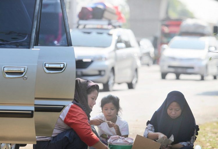 Ilustrai pemudik tengah berisirahat dalam perjalana mudik ke kampung halaman (Raka Denny/Jawa Pos)