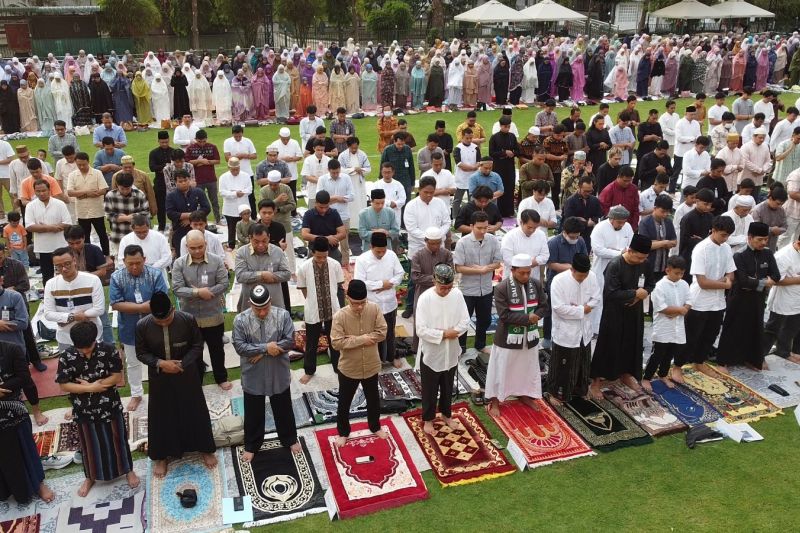 Ribuan masyarakat Indonesia melaksanakan sholat Idul Fitri 1445 H di lapangan sepak bola KBRI Bangkok, Thailand, Rabu (10/4/2024).